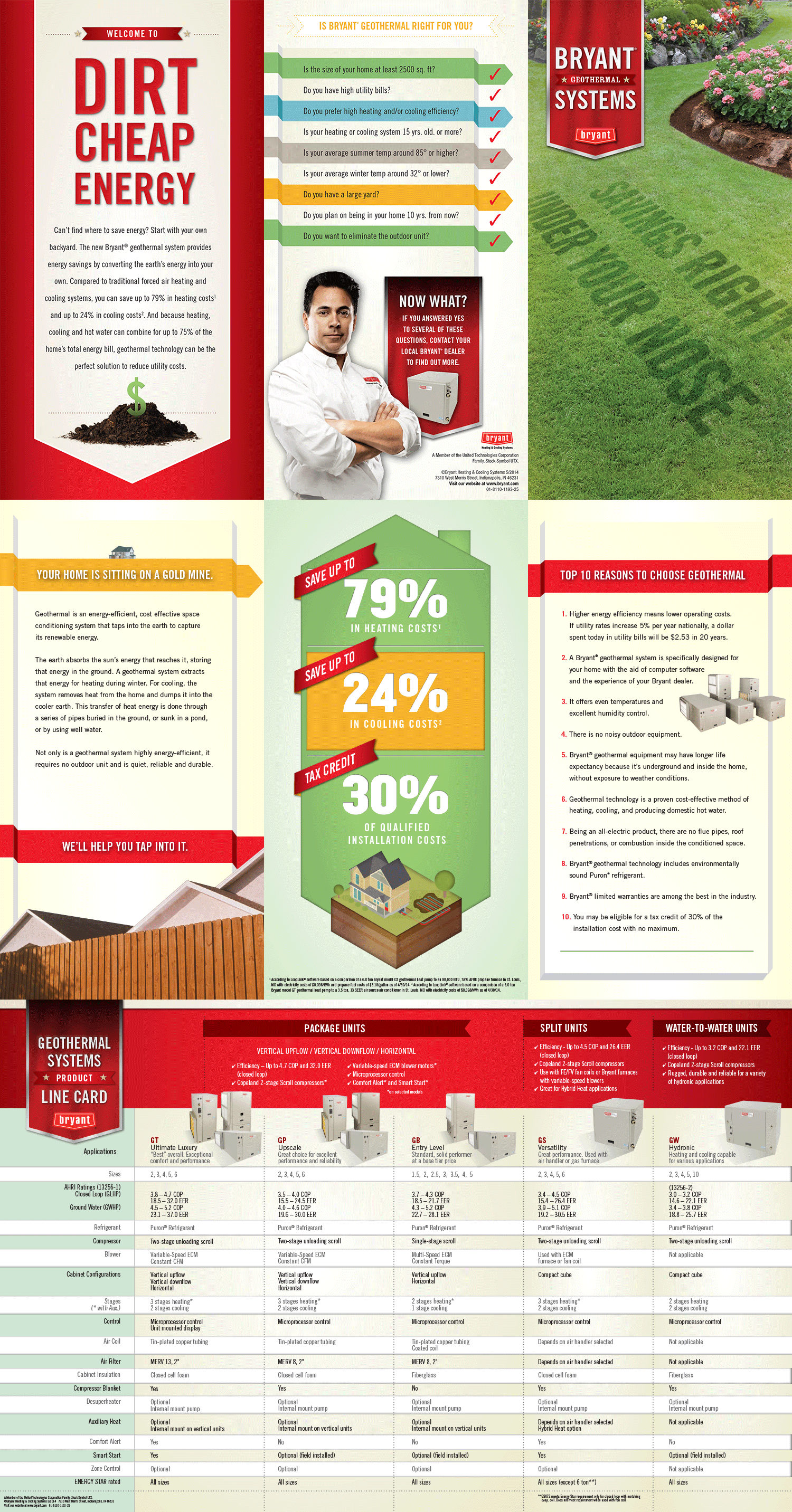 Bryant® packaged geothermal systems work quietly to deliver comfort with variable speed Preferred™ heat pumps or multi-speed Legacy™ heat pumps. Having the evaporator coil, condenser and compressor all in one cabinet allows you to easily and evenly heat or cool large homes.
